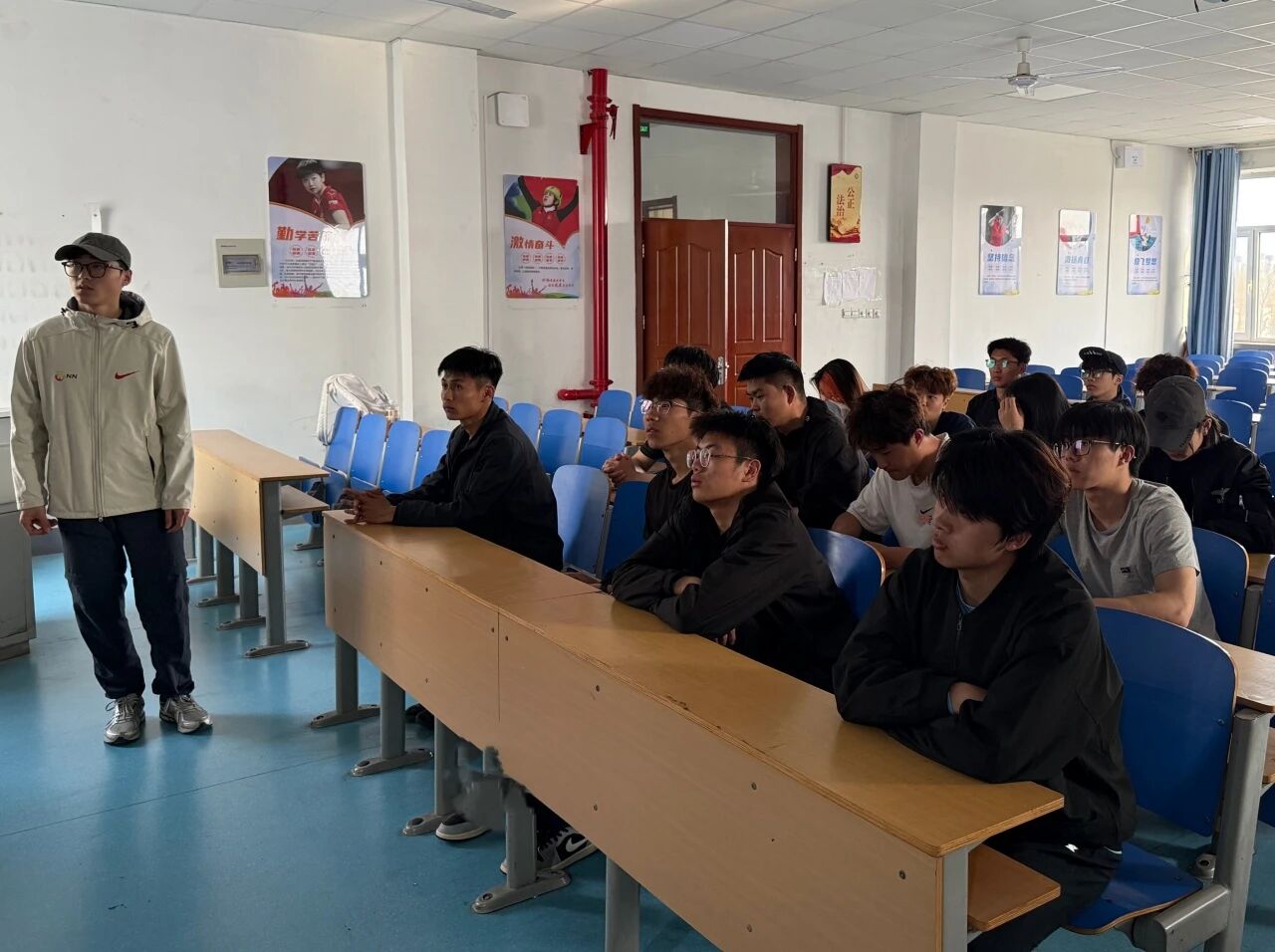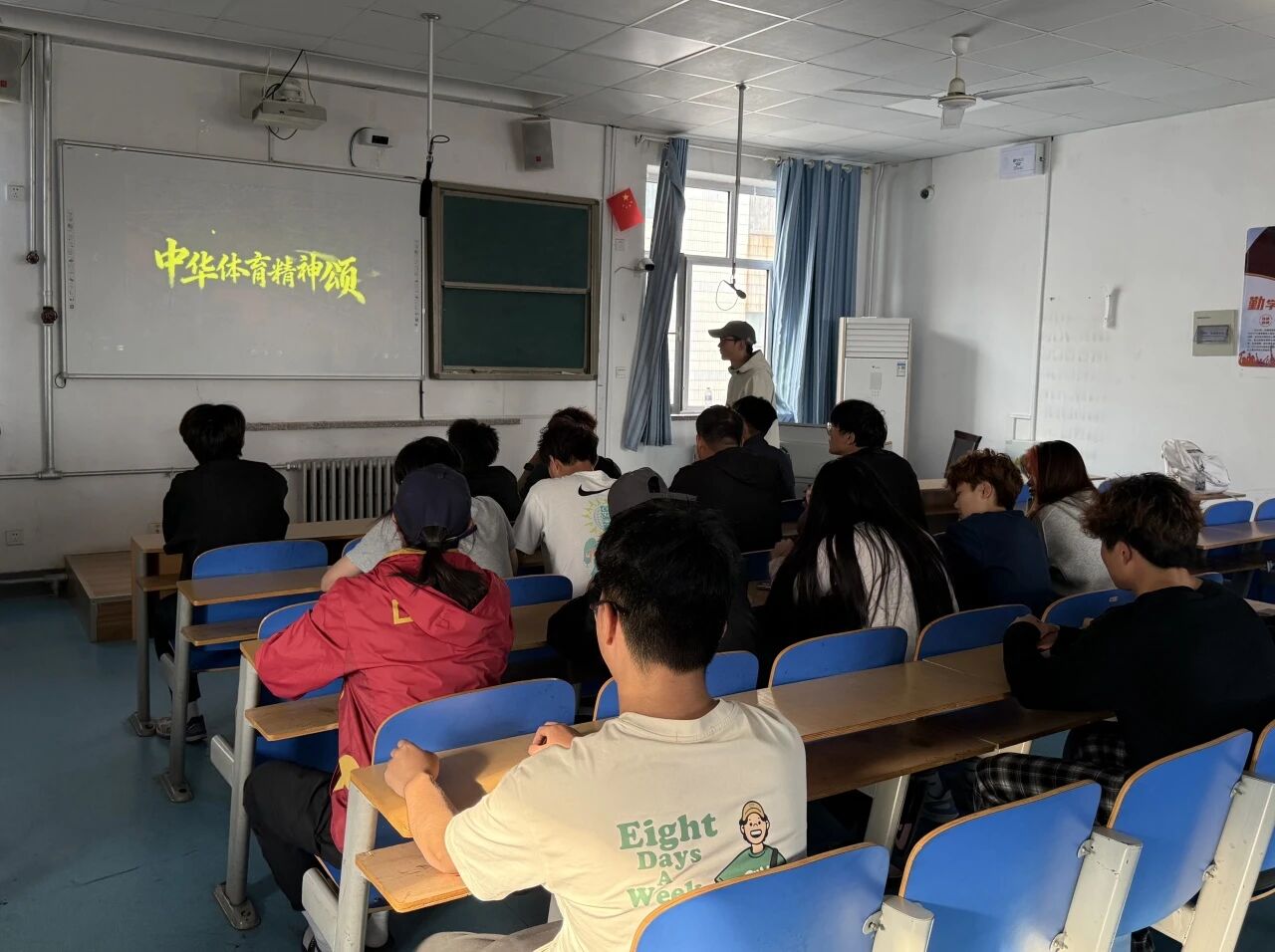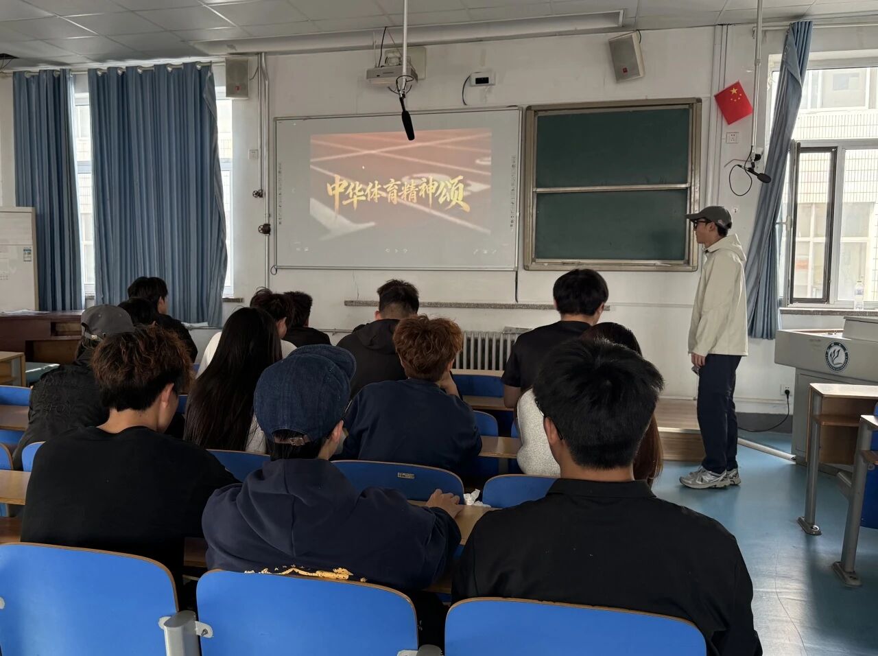 活动现场氛围庄重而热烈,各宿舍同学齐聚一堂。围绕“中华体育精神颂”的分享内容,各宿舍代表依次上台,凝练总结了日常训练与生活中的团结点滴,讲述了宿舍成员从相遇到相知、在体育精神感召下共同成长的温暖故事。现场同学们专注聆听、深入交流,在分享中传递出集体陪伴的真挚温情,充分展现了体育学子团结友爱、凝心聚力的良好精神风貌。